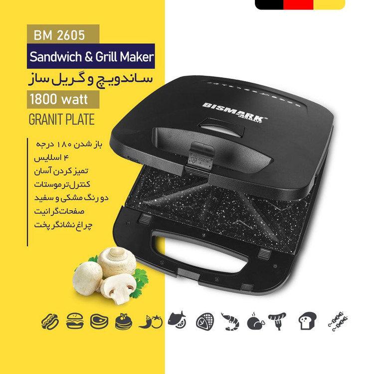 ساندویچ ساز بیسمارک تحت لیسانس آلمان مدل گریل ساز و اسنک ساز BM2605 bismark
