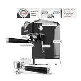 جنس بدنه این محصول از ترکیب استیل و پلاستیک مقاوم در برابر ضربه میباشد. دارای نشانگر میزان سطح آب می باشد. موارد استفاده این محصول دارای قابیلیت تهیه اسپرسو و کاپوچینو هست.