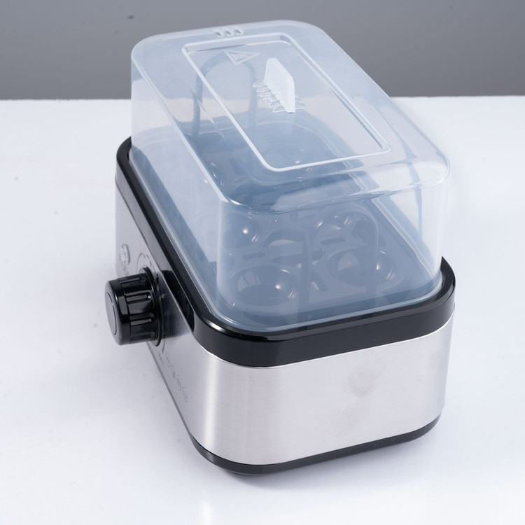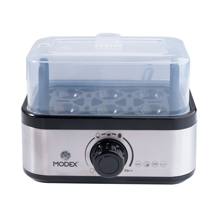 تخم مرغ پز مودکس مدل EB120 یک دستگاه ویژه برای پخت تخم مرغ به میزان دلخواه است. این تخم مرغ پز دستگاهی کوچک و جمع و جور است، که فضای بسیار کمی را گرفته و همچنین وزن سبکی دارد. این دستگاه با توان مصرفی 400 وات، قابلیت بخار پز کردن تخم مرغ، املت، نیمرو، ذرت و ... را به شما میدهد. شما میتوانید با استفاده از ولوم چرخشی، بین سه برنامه بخارپز میزان پخت مورد نظر خود را تعیین کنید. در واقع این ولوم چرخشی از خاموش کردن تا مدت زمان 30 دقیقه را پوشش میدهد. با توجه به میزان پخته شدن میتوانید مدت زمان مد نظرتان را انتخاب کنید. برای نمونه اگر بخواهید تخم مرغ عسلی باشد باید مدت زمان را بر روی 10 دقیقه تنظیم کنید ولی اگر بخواهید تخم مرغ سفت باشد، باید مدت زمان پخت را بر روی 15 دقیقه تنظیم نمایید. این دستگاه دارای خاموشی خودکار به همراه آلارم پایان پخت است که به شما اطلاع میدهد که غذای شما آماده شده است. همچنین چراغ نشانگر، روشن و خاموشی دستگاه را به شما نشان میدهد. صفحه گرم شونده دستگاه از جنس استیل ضدزنگ مقاوم و با دوام است. ظرفیت سینی بخارپز 6 عدد تخم مرغ است که برای خانوادههای کوچک و متوسط مناسب است. تخم مرغ پز مودکس مدل EB120 یک دستگاه با کاربری آسان و راحت است. شما فقط کافی است که تخم مرغ یا مواد دیگر را در سینی قرار دهید، مقدار آب را با پیمانه مدرج بریزید، برنامه بخارپز را تنظیم کنید و دکمه روشن را فشار دهید. بعد از پایان پخت، دستگاه به صورت خودکار خاموش میشود و آلارم صدا میدهد. لازم به ذکر است که به همراه این محصول پیمانه پلاستیکی مدرج و سینی مخصوص بخارپز و املت نیز عرضه میشود.