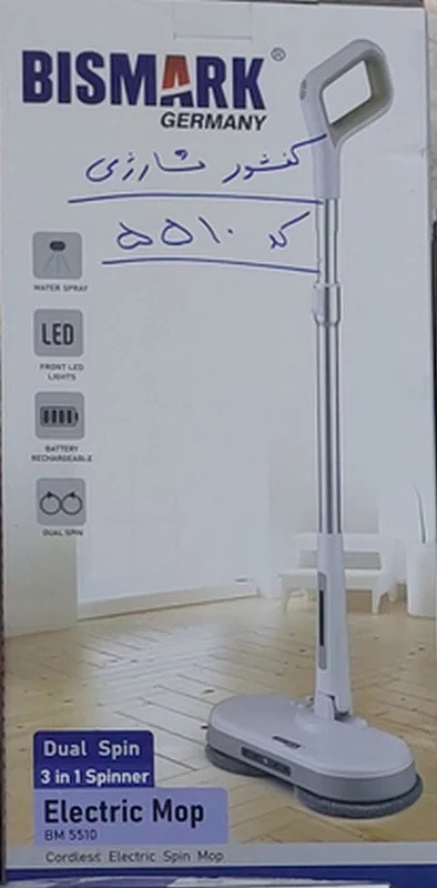 کفشور شارژی بیسمارک مدل 5510 با طراحی جدید دارای باتری لیتیومی2000 میلی آمپر و مخزن مواد شوینده دارای نوار ال ای دی آبپاش دارای لوله تلسکوپی با کیفیت عالی