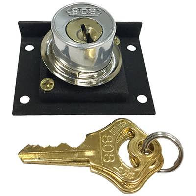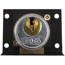 قفل کمدی 808 تک پله در ابعاد ۵٫۵ در ۴ سانت است . کلید ۱۸۰ درجه داخل قفل می چرخد و زبانه قفل یک مرحله بالا می آید بهمین علت به آن قفل تک پله می گویند . این قفل برای کمدهای چوبی و فایل های آهنی ادارات و مساجد کاربرد دارد .