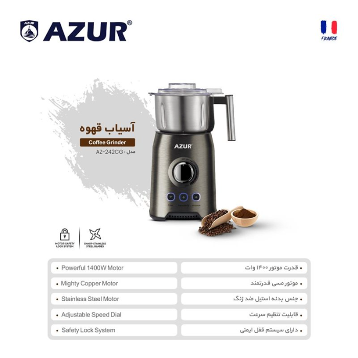 آسیاب قهوه آزور تحت لیسانس فرانسه مدل AZ-242CG با موتور قدرتمند 1400 وات اصلیAZUR