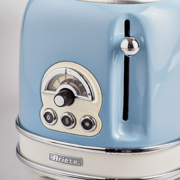 توستر آریته مدل 155 جزو مجموعه وینتیج شرکت آریته میباشد.این مجموعه شامل کتری برقی ،توستر،آون توستر،مخلوط کن و دستگاه قهوه ساز میباشد.طراحی این مجموعه بسیار منحصر به فرد میباشد و در کنار کارآیی بسیار عالی ظاهری بسیار زیبا زیبا نیز مد نظر قرار گرفته است. توستر 155 شرکت آریته دارای 6 برنامه متفاوت قابل تنظیم است همچنین قابلیت دیفراست یا یخ زدایی را نیز دارا میباشد. جنس بدنه فلزی بوده و در عین حال عایق بندی دستگاه باعث میشود در هنگام کار بدنه ی آن داغ نشود.در زیر دستگاه کشویی تعبیه شده است که به راحتی میتوان خرده های نان را جمع آوری نمود.