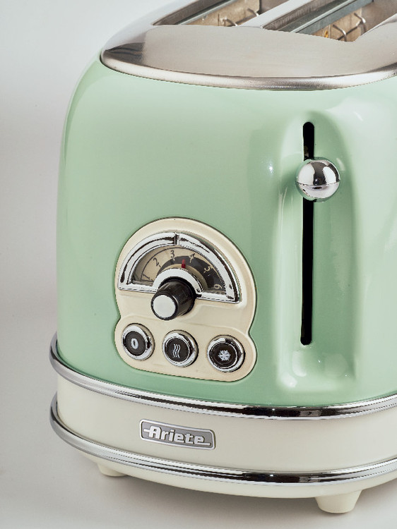 توستر آریته مدل 155 جزو مجموعه وینتیج شرکت آریته میباشد.این مجموعه شامل کتری برقی ،توستر،آون توستر،مخلوط کن و دستگاه قهوه ساز میباشد.طراحی این مجموعه بسیار منحصر به فرد میباشد و در کنار کارآیی بسیار عالی ظاهری بسیار زیبا زیبا نیز مد نظر قرار گرفته است. توستر 155 شرکت آریته دارای 6 برنامه متفاوت قابل تنظیم است همچنین قابلیت دیفراست یا یخ زدایی را نیز دارا میباشد. جنس بدنه فلزی بوده و در عین حال عایق بندی دستگاه باعث میشود در هنگام کار بدنه ی آن داغ نشود.در زیر دستگاه کشویی تعبیه شده است که به راحتی میتوان خرده های نان را جمع آوری نمود.