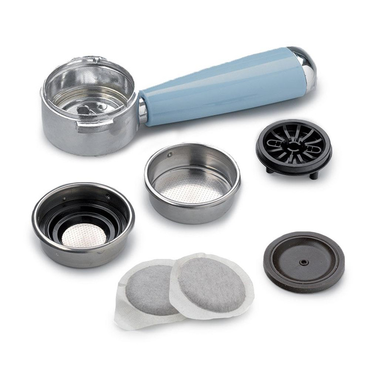 - ویژگی ها و عملکردها: دستگاه قهوه ساز دارای یک مانومتر برای نظارت بر فشار، خاموش شدن خودکار پس از 30 دقیقه عدم فعالیت، و یک سیستم Thermocream برای قهوه خامه ای است. این شامل 2 فیلتر برای 1 فنجان و 2 فنجان است