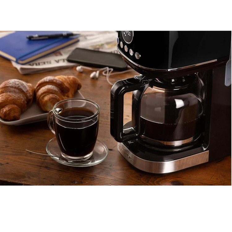 این قهوه ساز می تواند به سرعت و به راحتی تا 15 فنجان قهوه را تهیه کند. این دستگاه زیبا و با کاربری آسان، حفظ طعم و عطر اصیل قهوه را تضمین می کند. این دستگاه دارای صفحه نمایش LCD و همچنین ظرفیت ظرف آب 1.5 لیتری است. 1396 به شما اجازه می دهد تا دمای قهوه آماده شده را حفظ کنید که استفاده از آن را راحت تر می کند. دستگاه قهوه ساز با طراحی ظریف و زیبا، ساخت مینیمالیستی، به بخشی هماهنگ از فضای داخلی هر آشپزخانه ای تبدیل شده و روند نوشیدن قهوه را دلپذیرتر می کند.