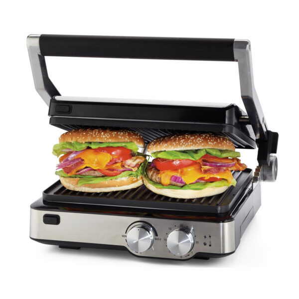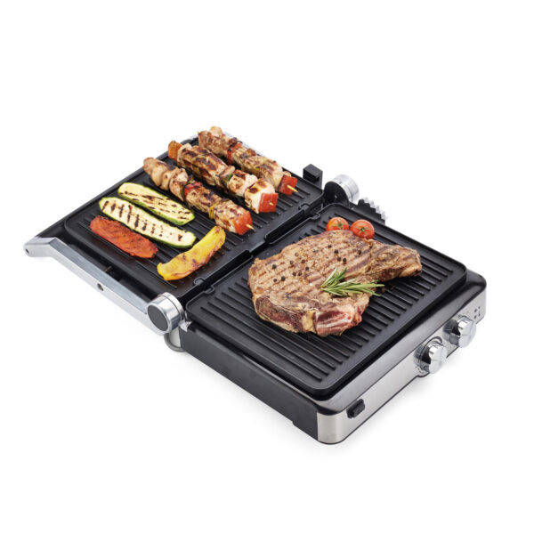 با انتخاب گزینه موقعیت کباب صفحه باز کباب پز و گریل برقی آریته مدل 1918 ، امکان پخت و کباب کردن بر روی سطح حتی گسترده تر وجود دارد. تایمر و تنظیم دما ، پخت و پز انواع غذا را آسان و دلپذیر می کند.