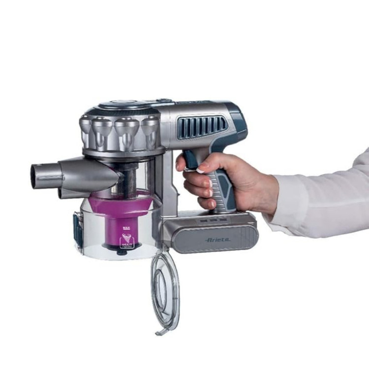 جارو برقی بی سیم ۲۲ ولتی لیتیوم آریته به گونه ای طراحی شده است که هر سطحی از خانه را در هر زمان به طور کامل جاروبرقی می کند و به لطف برس موتوری با چراغ های LED، حتی پنهانترین کثیفی ها را شناسایی می کند. فناوری 2 در 1 به شما این امکان را می دهد تا با چند مرحله ساده جارو برقی را به یک جاروبرقی دستی کاربردی و دستی تبدیل کنید تا کل خانه را راحت و سریع تمیز کنید. به لطف 3 سطح فیلتر، جارو برقی بی سیم لیتیومی 22 ولتی کثیفی را از کل خانه میمکد و به طور موثر تمام گرد و غبارها را پاک کرده و هوای فیلتر شده و تمیزتر را آزاد می کند، علاوه بر این با یک کلیک ساده، مخزن را مستقیماً در سطل خالی می کنید. جاروبرقی با مجموعه لوازم جانبی ارائه شده از جمله: اکسسوری پارچه ای، موثر برای جارو کردن مبل و صندلی راحتی و رسیدن به مخفیترین گوشه ها؛ قابلیت اتصال به دیوار، که به شما امکان می دهد جارو برقی بی سیم را به راحتی نگهداری کنید و همیشه آن را در دسترس داشته باشید تا در صورت نیاز از آن استفاده کنید.