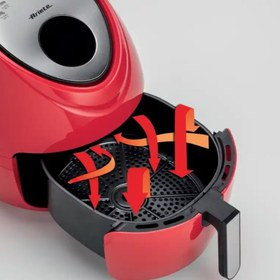 این سرخ کن هوا با تولید هوای دمای بالا ، تا 200 درجه ، که با حداکثر سرعت و در 360 درجه درون محفظه پخت و پز گردش می کند و توزیع یکنواخت گرمایی که در داخل تامین می کند ، غذا را می پزد. این هوای گرم است که اجازه می دهد تکه های غذا به صورت یکنواخت بپزند و باعث تشکیل روکشی ترد به غذا می شود .