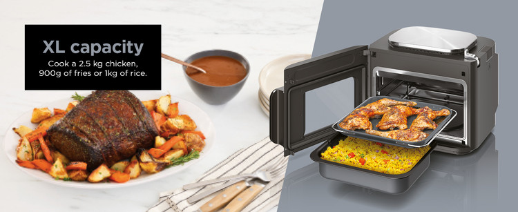 - وعده های غذایی کامل در 15 دقیقه: پروتئین ها، سبزیجات و پاستا یا غلات خود را همزمان بپزید و غذا را 50 درصد سریعتر از اجاق دیواری درست کنید.