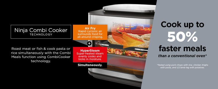 - فنآوری اجاقپز ترکیبی نینجا: HyperSteam و Air Fry با هم ترکیب میشوند تا داخل آبدار و بیرونی خوشمزه ترد را به یکباره ایجاد کنند. بخار فوق گرم به طور یکنواخت آب می پزد و در آب می ماند در حالی که هوای طوفانی سریع غذا را کاملا ترد می کند