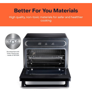 با توان 1600 وات، این دستگاه به سرعت قادر است انواع غذاها را آماده کند. سیستم هواپز (Air Fry) آن باعث میشود که مواد غذایی بدون نیاز به روغن یا با مقدار کمی روغن پخته شوند، بنابراین شما میتوانید غذاهای سالمتری تهیه کنید. فن کانوکشن با جریان هوای 360 درجه، حرارت را به طور یکنواخت در تمام فضای دستگاه پخش کرده و کمک میکند تا غذا به طور کامل پخته و برشته شود. این ویژگی باعث میشود که پخت غذا در کمترین زمان ممکن انجام شود و طعم و بافت مطلوبی داشته باشد.