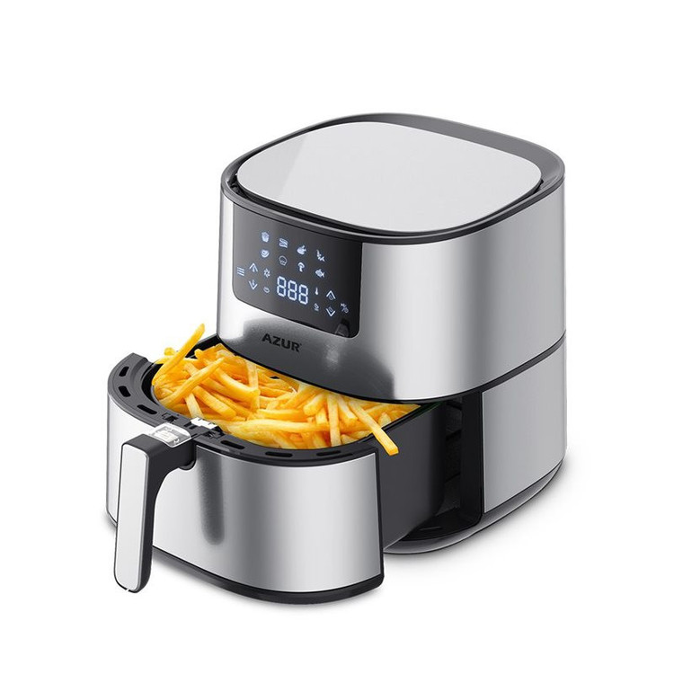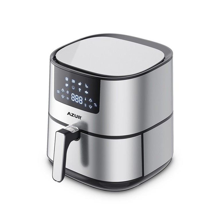 سرخکن بدون روغن آزور مدل AZ-418 با توان 2000 وات و ظرفیت 6.4 لیتر دارای صفحه نمایشگر لمسی با برنامه های سرخ کردن پیش فرض میباشد این مدل سرخکن بدون روغن مجهز به المنت مسی چند لایه است و محفظه داخلی کاملا فلزی دارد
