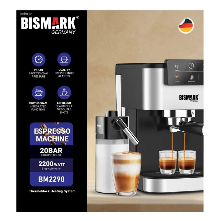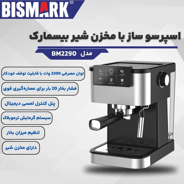 اسپرسو ساز اتومات با مخزن شیر بیسمارک مدل BISMARK-BM2290 (اورجینال) – 18 ماه کارت طلایی گارانتی – 60 ماه خدمات پس از فروش معتبر