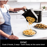 - SYNC (همگامسازی): اگر دو غذای متفاوت را با زمان پخت متفاوت دارید اما میخواهید هر دو همزمان آماده شوند، عملکرد SYNC به شما کمک میکند تا دستگاه پایان زمان پخت را برای هر دو سبد همگامسازی کند.