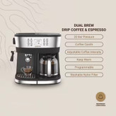 دستگاه قهوه و اسپرسو لپرسو مدل LePresso Dual Brew چندکاره، قابلیت های قهوهسازی قطرهای و اسپرسوسازی را با هم ترکیب کرده و تجربه کاملی از قهوه سازی را ارائه میدهد. این دستگاه با ولتاژ 220-240 ولت و فرکانس 50-60 هرتز و توان 1690-2015 وات، عملکردی پایدار و مطمئن را تضمین میکند و نیاز های شما برای نوشیدن یک قهوه ایده آل را به خوبی برآورده میکند. همچنین، دمای نگهداری قهوه بین 82 تا 88 درجه سانتیگراد است که باعث میشود قهوه شما در دمای ایده آل و مطبوع باقی بماند. دستگاه LePresso Dual Brew با سیستم فشار 20 بار، طعم و عطر حداکثری را از دانه های قهوه استخراج میکند و طعمی بی نظیر از قهوه را به شما ارائه میدهد. با ظرفیت 10 فنجان، این دستگاه به شما اجازه میدهد تا به اندازه کافی قهوه برای خود، خانواده یا مهمانان فراهم کنید. ویژگی تنظیم غلظت قهوه نیز به شما امکان میدهد تا قدرت قهوه خود را به دلخواه تنظیم کنید بخصوص اگر به دنبال کافئین تنظیم شده در روز هستید و یا در برنامه رژیم خود به اندازه مشخصی قهوه مصرف می کنید. فیلتر نایلونی قابل شستشوی این دستگاه از لپرسو، نگهداری و نظافت دستگاه را آسان کرده و کیفیت قهوه را بهبود میبخشد. با نمایشگر LCD کاربرپسند، میتوانید فرایند قهوهسازی را به راحتی کنترل کنید. این دستگاه همچنین دارای قابلیت نگهداری قوری به صورت گرم برای دو ساعت است و با دوشاخه سه پین بریتانیایی عرضه میشود، بنابراین میتوانید از آن در منزل یا محیط کار استفاده کنید.