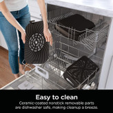 مشخصات کلی: برند: نینجا (Ninja) مدل: DG551 رنگ: مشکی / نقرهای جنس بدنه: سرامیک ابعاد: ۲۸٫۲ سانتیمتر (عمق) × ۳۹٫۸ سانتیمتر (عرض) × ۴۰٫۶ سانتیمتر (ارتفاع) وزن: ۱۱٫۳ کیلوگرم توان مصرفی: ۱۷۶۰ وات ولتاژ: ۱۲۰ ولت ظرفیت: بسیار بزرگ (قابل استفاده برای ۶ استیک یا ۲۴ هاتداگ) ویژگیهای کلیدی: ۶ عملکرد پخت: گریل (کبابی)، سرخکن بدون روغن (ایرکرسپ)، بریان کردن (روست)، پخت (بیک)، گریل از بالا (برویل)، خشک کردن مواد غذایی (دهیدراته). سیستم پخت هوشمند و دماسنج: دارای ۴ تنظیمات مختلف برای انواع پروتئین و ۹ سطح دلخواه برای تعیین میزان پخت، بدون نیاز به حدس زدن. فناوری گریل سایکلونیک (Cyclonic Grilling Technology): استفاده از جریان هوای ۵۰۰ درجه فارنهایت و صفحه گریل ۵۰۰ درجه فارنهایت برای ایجاد خطوط گریلشده حرفهای و طعم دودی واقعی. سیستم کنترل دود: با استفاده از صفحه گریل کنترل شده از نظر دما، محافظ پاشش روغن و ناحیه خنککننده هوا، میزان دود در آشپزخانه را به حداقل میرساند. پخت سالمتر: امکان سرخ کردن مواد غذایی با ۷۵٪ چربی کمتر نسبت به روشهای سنتی سرخ کردن. ظرفیت مناسب خانواده: ظرفیت بسیار بزرگ برای پخت وعدههای غذایی خانوادگی یا مهمانیها. قابلیت شستوشوی آسان: قطعات قابل جداسازی شامل صفحه گریل، سبد سرخکن و قابلمه پخت، دارای پوشش سرامیکی و قابل شستوشو در ماشین ظرفشویی، بدون مواد مضر PTFE/PFOA. اقلام همراه: صفحه گریل سبد سرخکن (ایرکرسپ) قابلمه پخت دماسنج هوشمند برس تمیزکاری کتابچه دستور پخت محافظ پاشش روغن این گریل خانگی با ترکیب عملکردهای متنوع در یک دستگاه، راهکار کاملی برای انواع نیازهای پختوپز ارائه میدهد و با ویژگیهای پیشرفته و طراحی کاربرپسند، یک انتخاب عالی برای هر آشپزخانه است. |