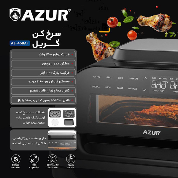 سرخ کن بدون روغن 10 لیتری آزور مدل AZUR AZ-458