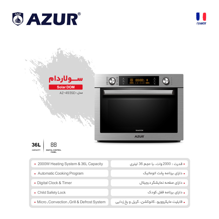 مایکروویو آزور اصلی تحت لیسانس فرانسه مدل AZ493SD ظرفیت ۳۶ لیترAZUR