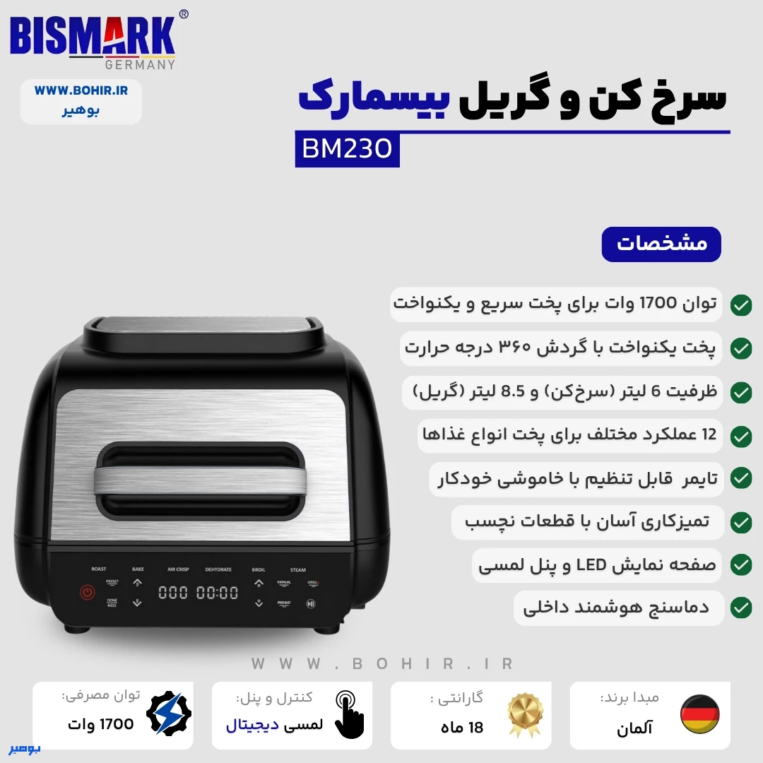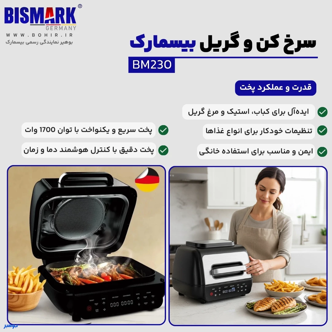 توان و عملکرد سرخ کن و گریل 12 کاره بیسمارک مدل BM230