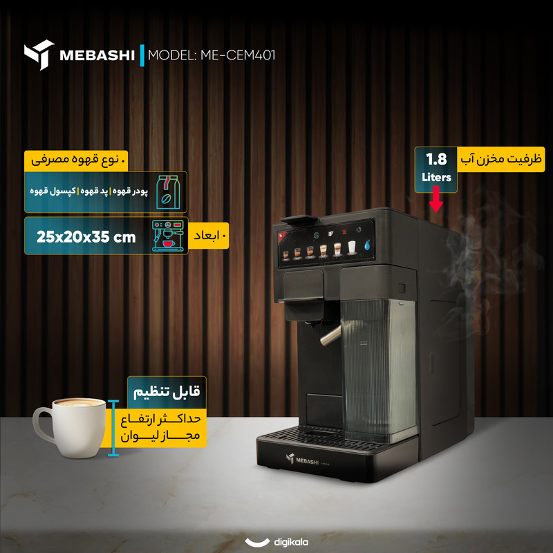 اسپرسو ساز 1800 میلیلیتر مباشی مدل Mebashi ME-CEM401